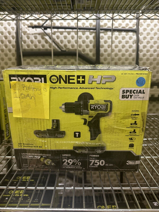 Kit de taladro percutor sin escobillas Ryobi de 18 V y 1/2" - PBLHM101K2